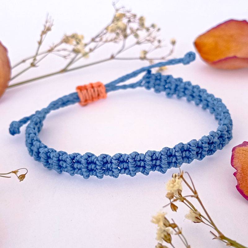Questo bracciale macramè è realizzato a mano con una lavorazione che unisce semplicità e raffinatezza. Può essere realizzato in un unico colore o in 2 colori diversi.