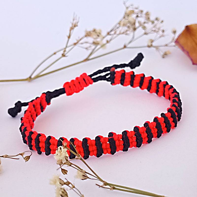 Il contrasto nella versione bicolore dona a questo accessorio un fascino unico e originale. Il cordino, intrecciato con cura secondo la tradizionale tecnica del macramè, crea un design delicato ma resistente, perfetto per chi cerca un gioiello che unisca bellezza e praticità.