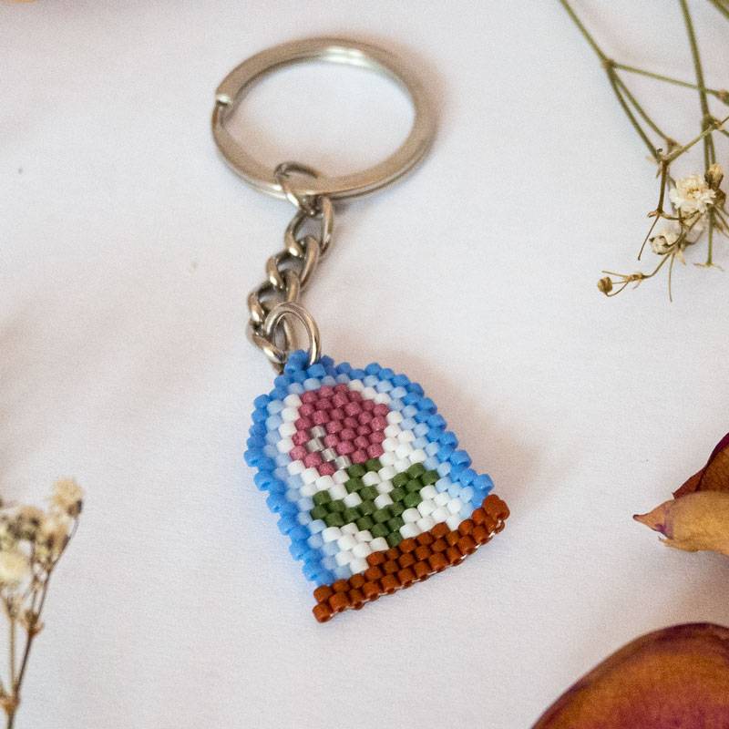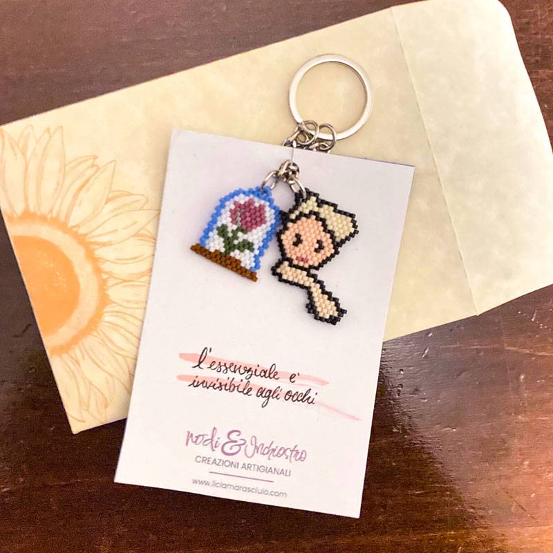 Realizzato con maestria utilizzando perline di alta qualità, questo portachiavi presenta una rosa, ispirata alla leggendaria rosa del Piccolo Principe.